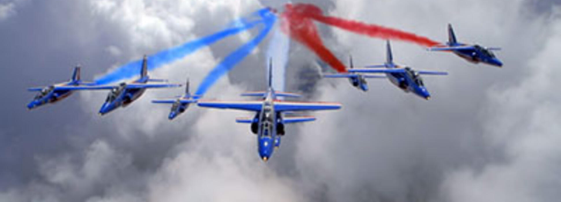 There Patrouille de France, also called PAF (Patrouille Acrobatique de France or Acrobatic Patrol of France) is a unit of the Air Force Presentation Teams (EQPAA). It represents the French armed forces in a broad sense: land, sea, air and space. Aerial demonstrations are part of a positive dynamic that weaves a close bond between the military and the public. It must be admitted that with their blue, white and red colors and their nose headlight, the alphajets look sharp! The smoke container fixed under the belly will deploy the famous tricolor plume that thrills the public and awakens patriotic impulses.