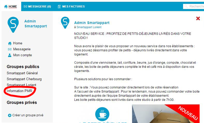 Sur le Smartnetwork, un groupe public permet à tous d'échanger en ligne, entre clients, avec l'equipe de Smartappart, et également avec les partenaires et acteurs environnants.