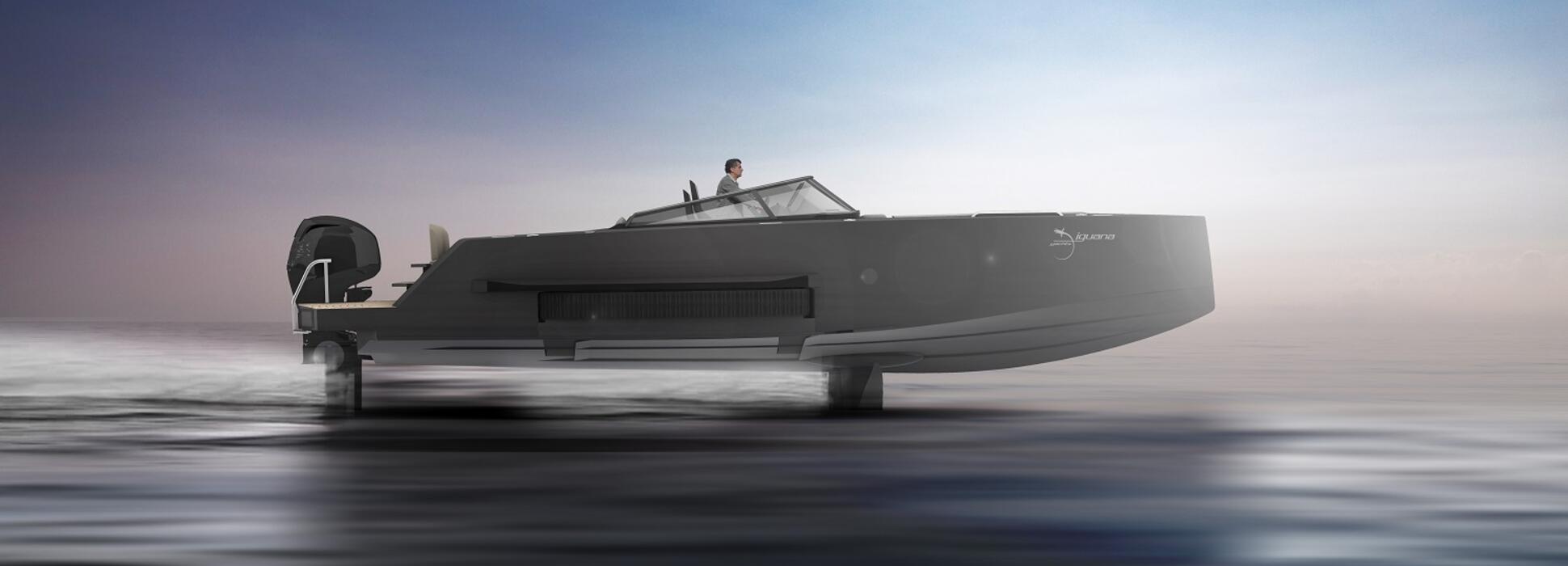 Iguana Yachts se lance dans un chantier high tech avec la version électrique et volante de ses bateaux à moteur amphibies. Les propriétaires de maisons en bord de mer auront désormais la possibilité de profiter d'une balade à moteur électrique sur des foils. Sur terre, sur mer et dans les airs, le nouvel Iguana foiler est chez lui… comme un poisson dans l’eau !