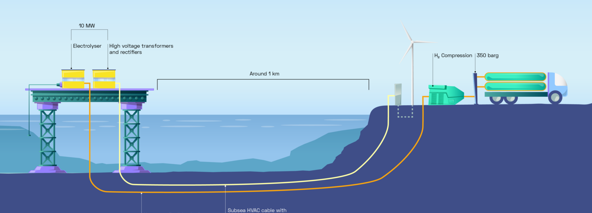 Hope répond à l’objectif de la Commission européenne de produire 10Mt d’hydrogène propre dans l’Union européenne d’ici 2030. Il pourra en effet produire jusqu’à 4 tonnes / jour d’hydrogène vert en mer. D’offshore à onshore, il sera par la suite exporté à terre par un pipeline, compressé et distribué aux industriels et aux transports. Une première mondiale pour la mise en œuvre d’un projet de cette dimension. Il faudra attendre 2026 pour que l’unité de production, les infrastructures d’export et de distribution soient effectives. La décarbonation de l’économie européenne est en marche !