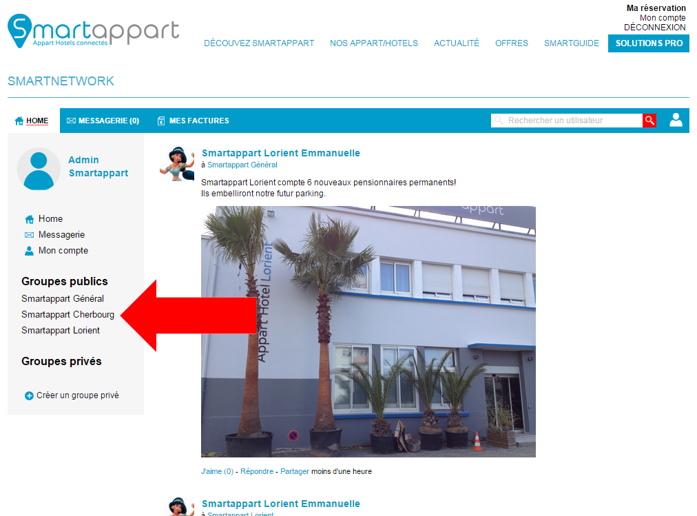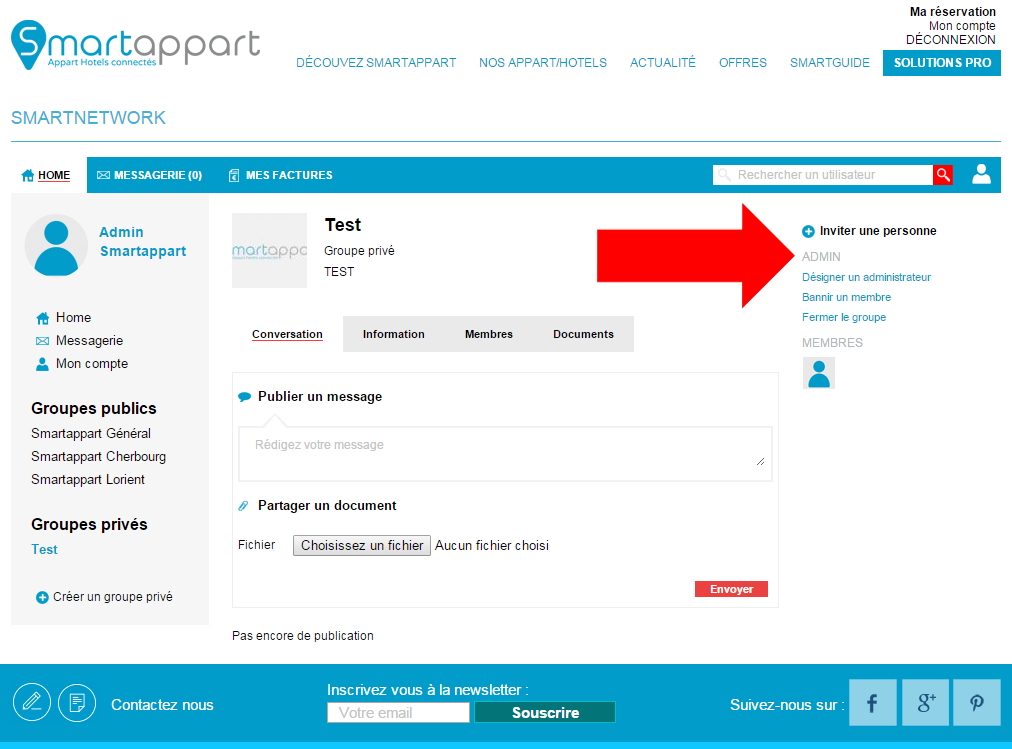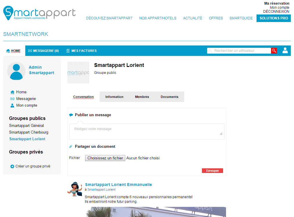 Le Smartnetwork vous permet également d'échanger des messages privés avec un ou plusieurs membres. Rendez-vous dans votre messagerie.