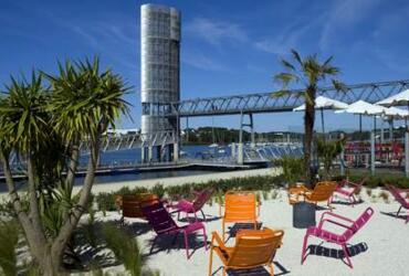 base de Keroman 56100 LORIENTSur le quai de la base sous marine, vous pourrez prendre un verre ou un repas en intérieur comme en extérieur.Dans un décor de plage avec transat, sable et palmiers face aux bateaux, vous profiterez d'un moment de détente entre amis ou en famille.